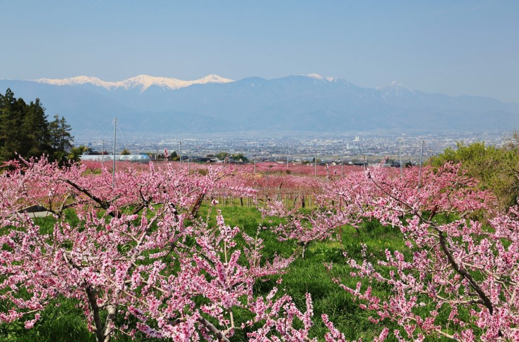 肥沃な土壌と盆地特有の昼夜の寒暖差がおいしい桃やぶどうを育む